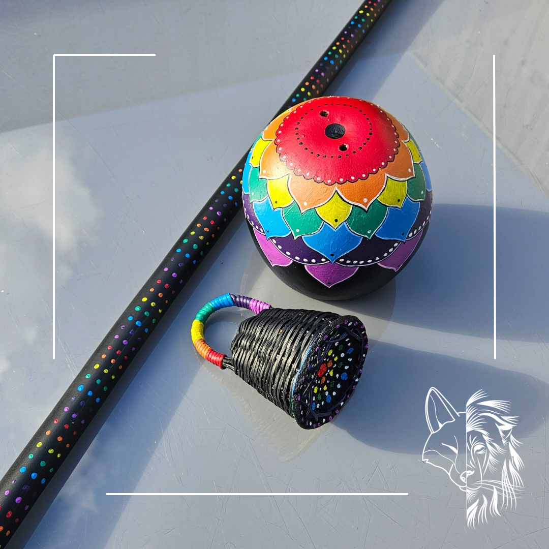 This instrument is a Berimbau which is commonly used in the traditional music and martial art of Capoeira. I was asked back in August to personalise this beautiful instrument consisting of 3 parts, the cabaca (dome shape), the verga (stick) and the caxixi (shaker). The brief was a black painted…